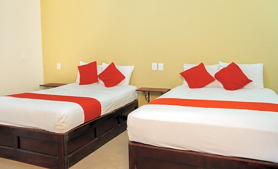 This room has 2 double beds, a flat screen TV and air conditioning.