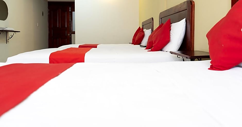 This room has 2 double beds, a flat screen TV and air conditioning.